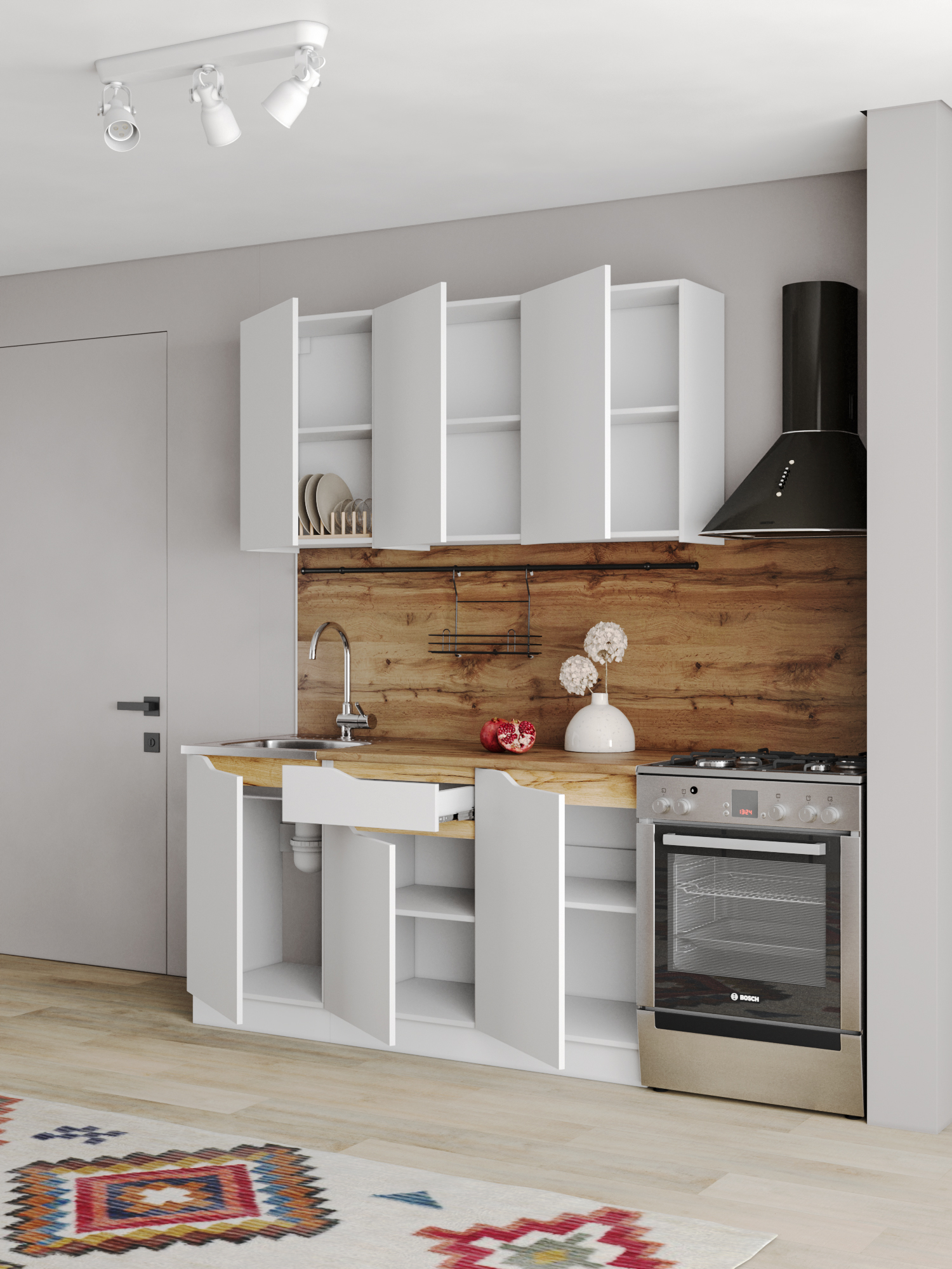 Кухонный гарнитур Мирра — практичный комплект длиной 1,5 метра в современном стиле
