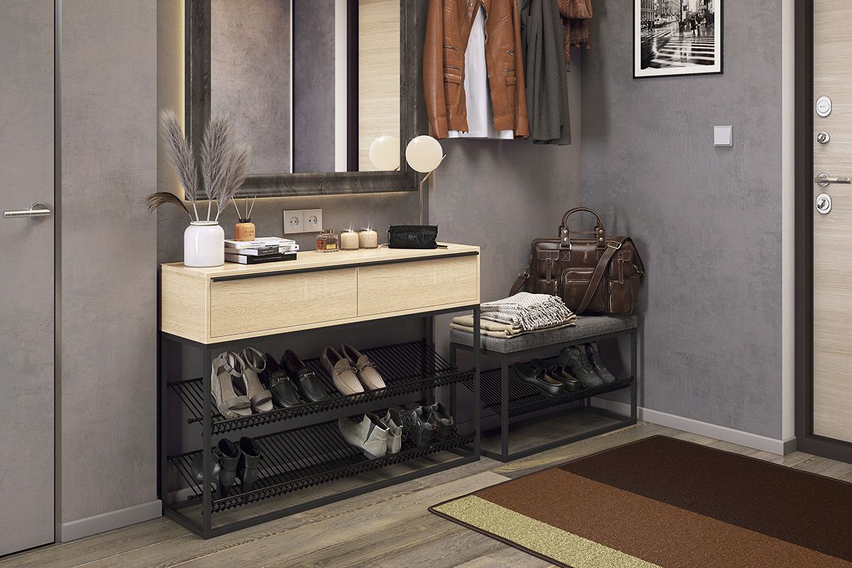 Удобная обувница в стиле Лофт из алюминевого профиля. Изделие не разборное, Одноразовая сборка алюминевой конструкции.