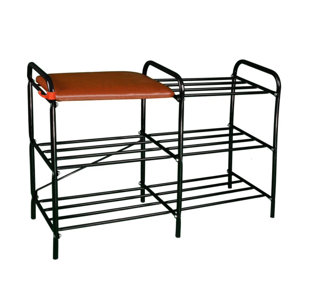 Полка для обуви 3-х Полочная 80см с сиденьем черный, Соликамск