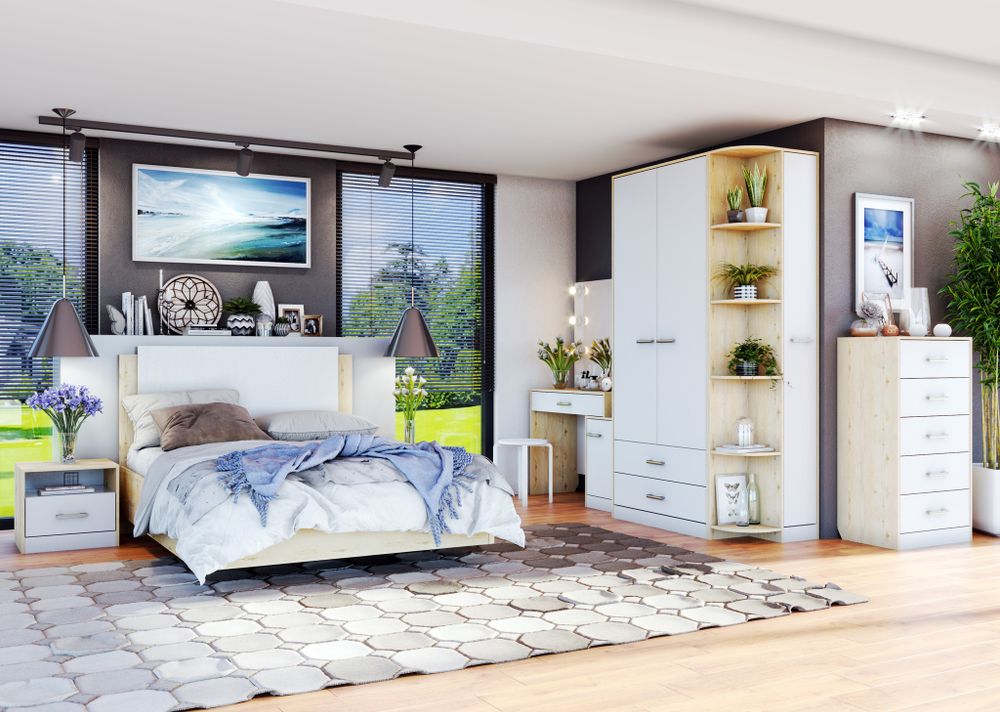 Шкаф двухстворчатый с двумя ящиками "Милана" (гаскон пайн/белый лофт), ЛДСП, Велес