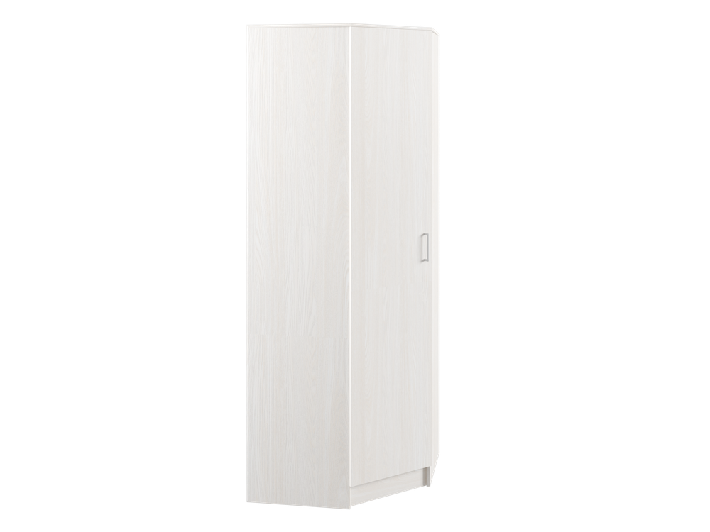 Удобный угловой шкаф из модульного спального гарнитура "Ронда" отличает позитивная контрастная расцветка и возможность установки в небольшом помещении для рационального использования углов комнаты. Внутри он просторнее, чем кажется снаружи. За распашной створкой скрываются пять полок и отделение с деревянной штангой и антресольной полкой.