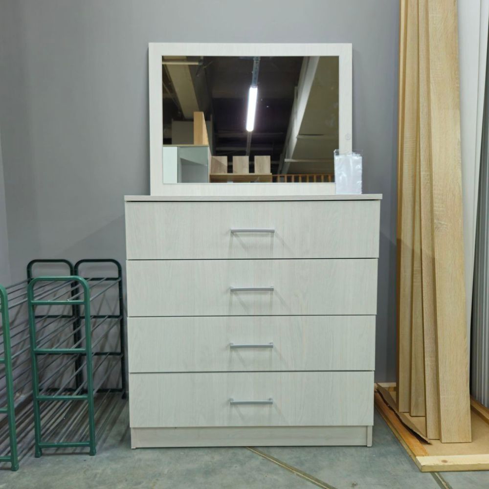Классический комод с четырьмя ящиками одинакового размера. Вместительный, надежный, оснащенный качественными выдвижными механизмами. На фасаде каждого ящика - две декоративных ручки.