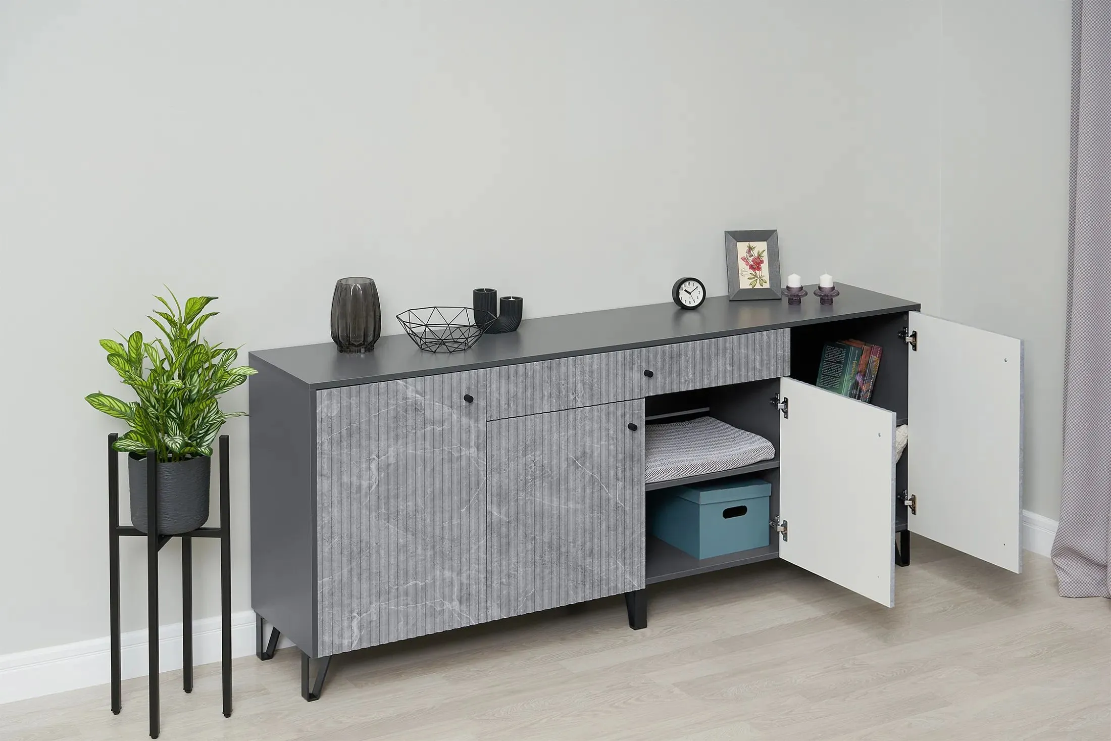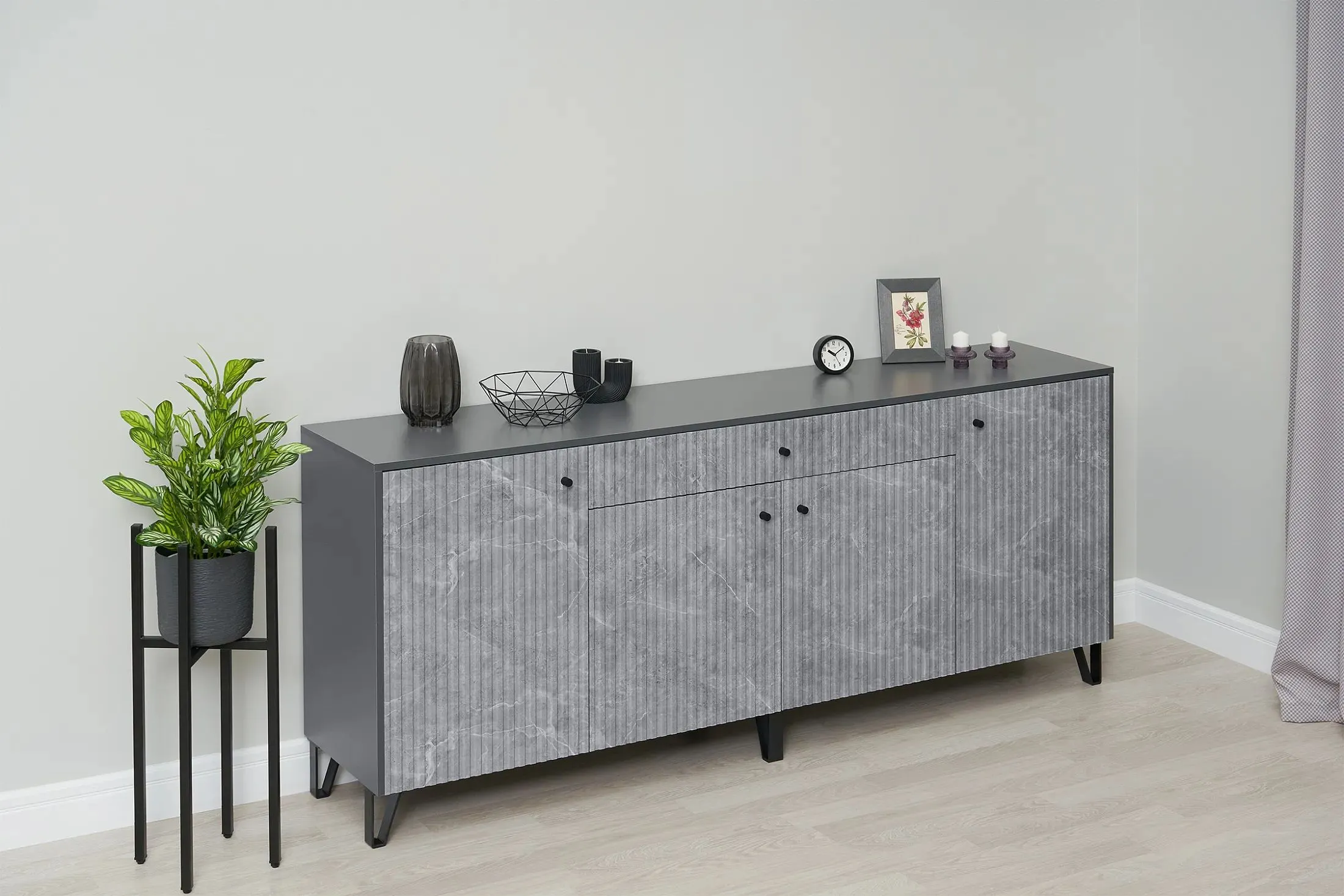 Комод «Оливия» от производителя МФ Миф – элегантное решение для хранения вещей! Продукт выполнен из качественных материалов в стильном графитово-мраморном глянцевом исполнении, гармонично вписывающемся в любой интерьер. Размер комода (высота 830 мм, ширина 2000 мм, глубина 426 мм) обеспечивает максимальное удобство использования и вместительность. Покупайте мебель, которая сочетает красоту, функциональность и качество прямо сейчас!