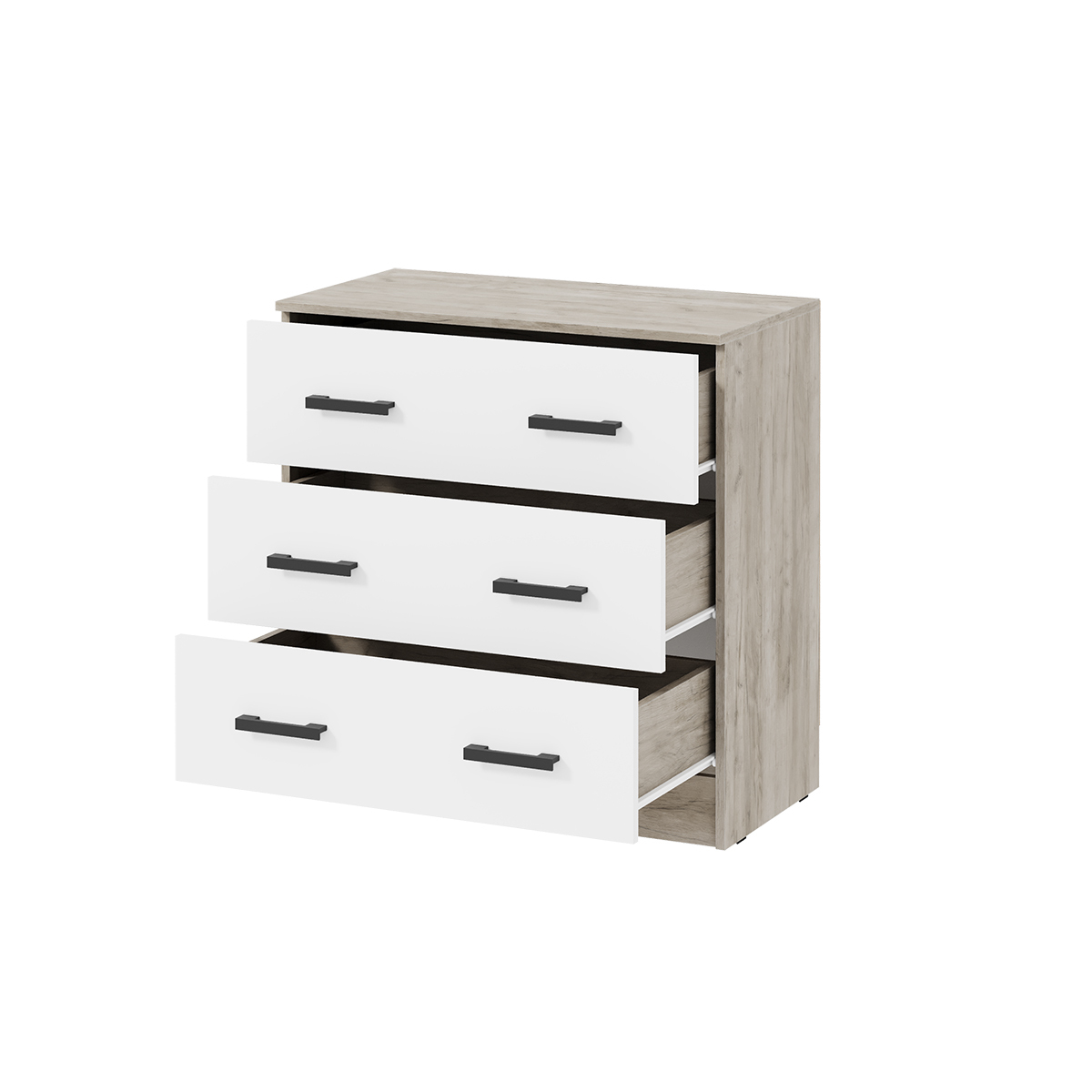 Комод подойдет даже для небольшой спальни, при этом 3 объемных ящика вместят белье и другие предметы гардероба