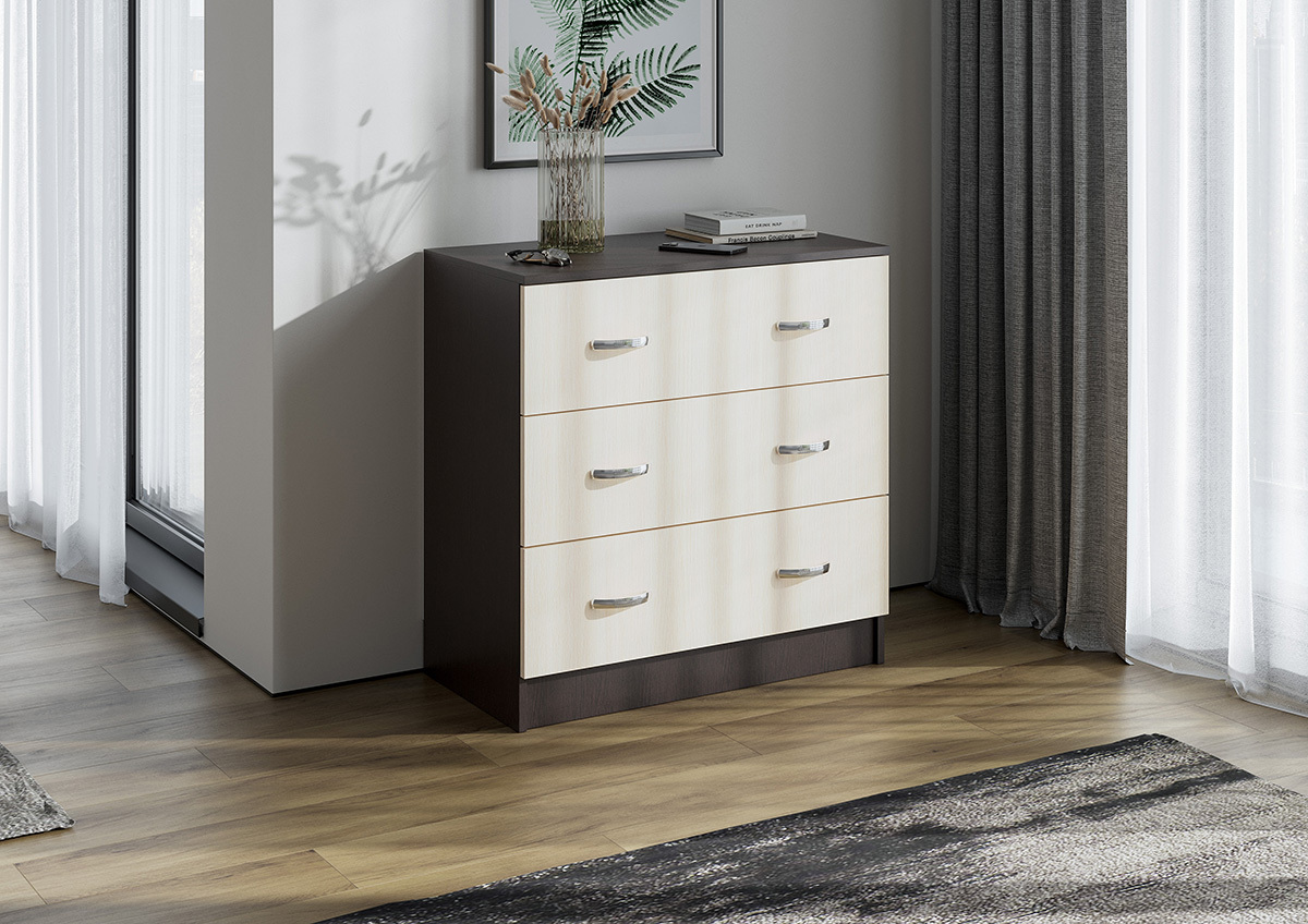 Комод подойдет даже для небольшой спальни, при этом четыре объемных ящика вместят белье и другие предметы гардероба