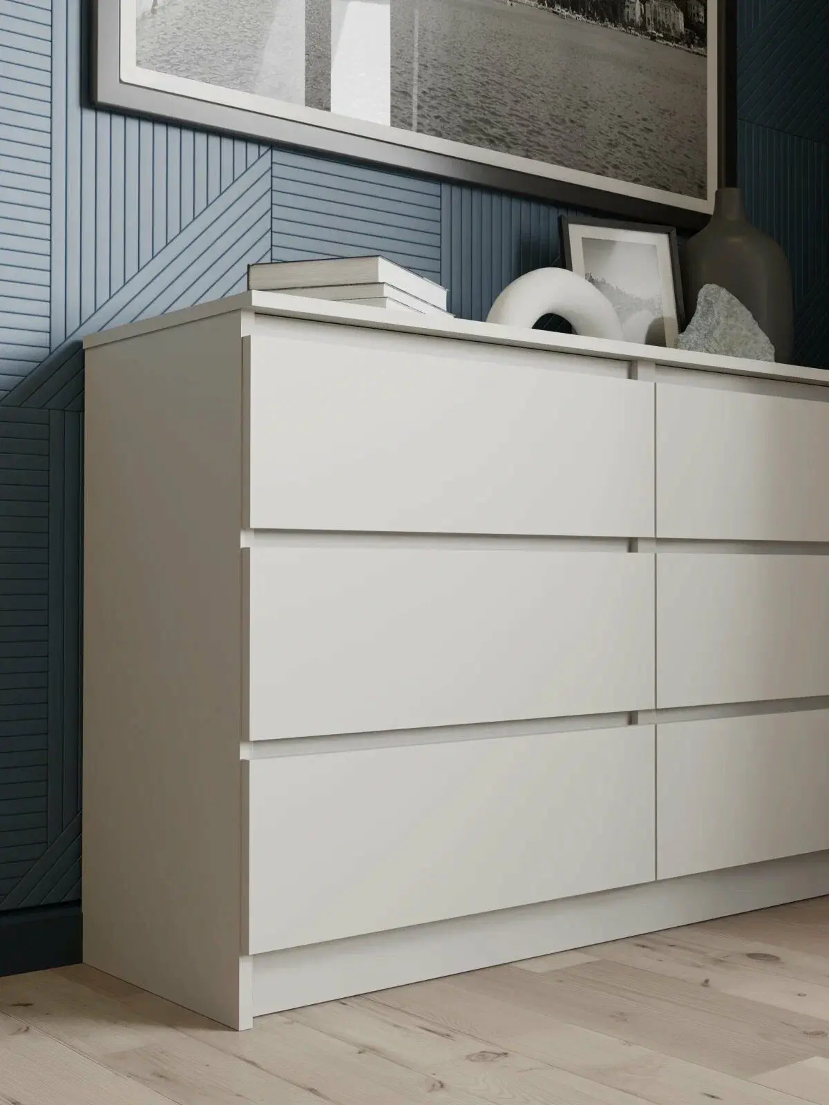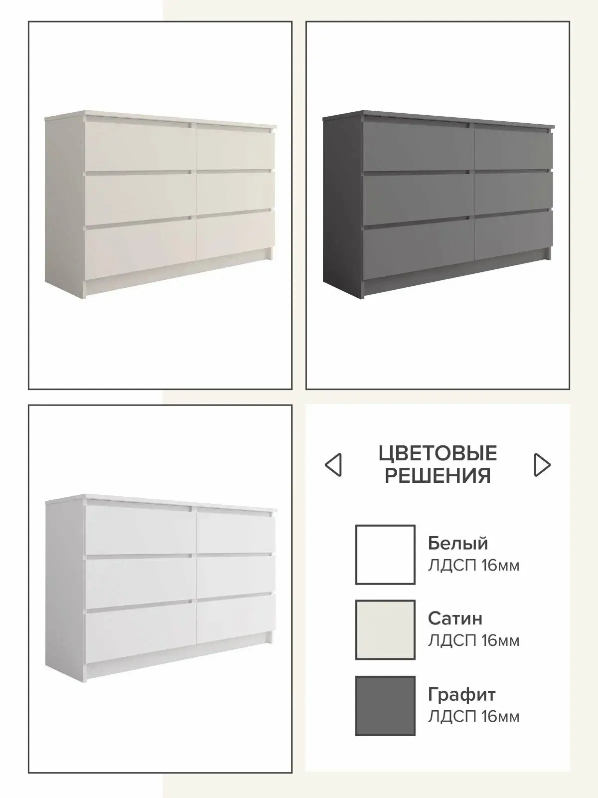 Комод "МК 1200.6" от производителя «ДСВ Мебель» города Пензы — стильное решение для вашего интерьера! Преимущества модели: - Просторный объем шести удобных вместительных ящиков; - Габариты комода идеально впишутся даже в небольшое помещение: ширина – 1204 мм, глубина – 404 мм, высота – всего лишь 770 мм; - Элегантная цветовая гамма сатинового оттенка подчеркнет ваш изысканный вкус! Практичность форм, качество исполнения и стильный дизайн делают этот комод превосходным выбором для хранения вещей и украшения пространства!