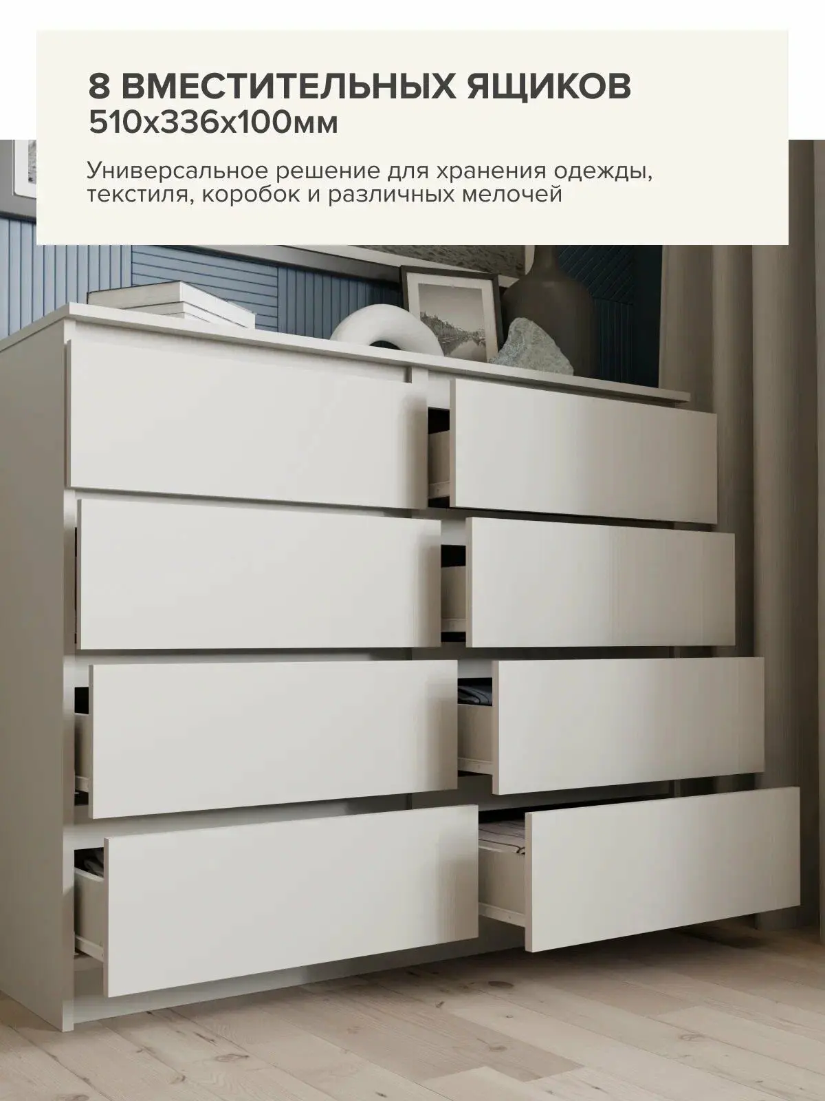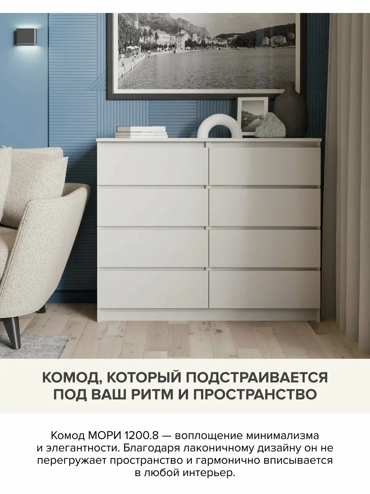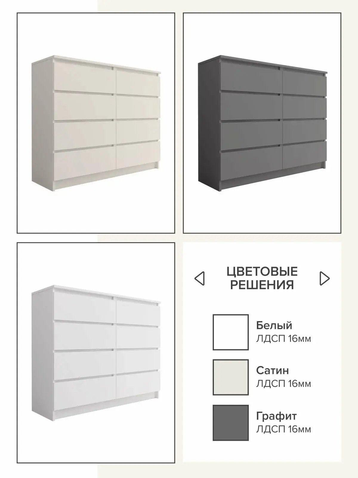 Комод "МК 1200.8" от производителя «ДСВ-Мебель» города Пензы – идеальное решение для практичных хозяев! Современное исполнение в цвете сатин гармонично впишется в любой интерьер. Пространство комода эффективно организовано благодаря восьми вместительным ящикам размером 1204x404 мм при высоте предмета 990 мм — теперь ваши вещи будут аккуратно сложены и всегда под рукой! Практичность мебели подчеркивается её компактностью и функциональностью, а стильная текстура цвета сатин придаст вашему дому особый шарм и уют.
