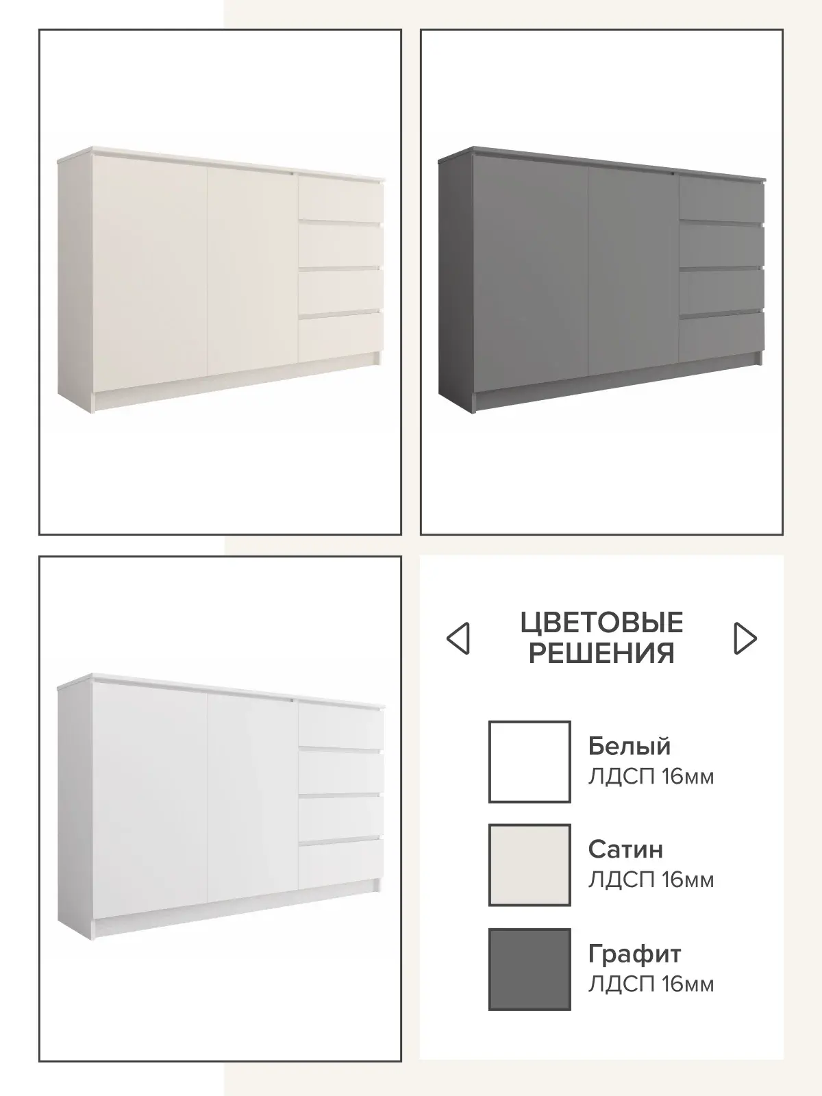 Комод "МК 1600.1 от бренда «МС Мори» станет стильным дополнением вашего интерьера! Выполненный из качественных материалов производителем ДСВ Мебель (г. Пензa) в цвете сатин, он идеально впишется в любую обстановку. Благодаря габаритам шириной 160 см вы получите максимум пространства для хранения вещей. Покупайте прямо сейчас – ваш идеальный комод уже ждет вас!