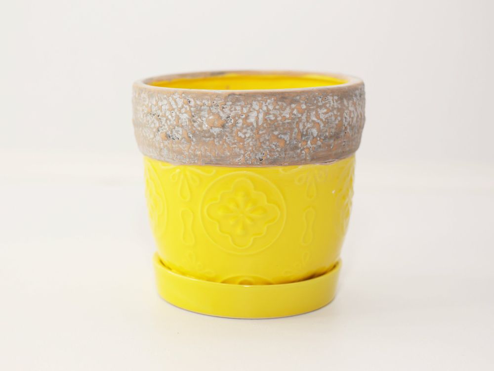 Украсьте свой интерьер красивым и функциональным горшком из стеклокерамики! Этот желтый горшок диаметром 14 см и высотой 12 см прекрасно впишется в любое помещение, добавив нотку уюта. Высокое качество материала обеспечит долговечность изделия. Приобретите его уже сегодня и наслаждайтесь свежим видом вашего растения!