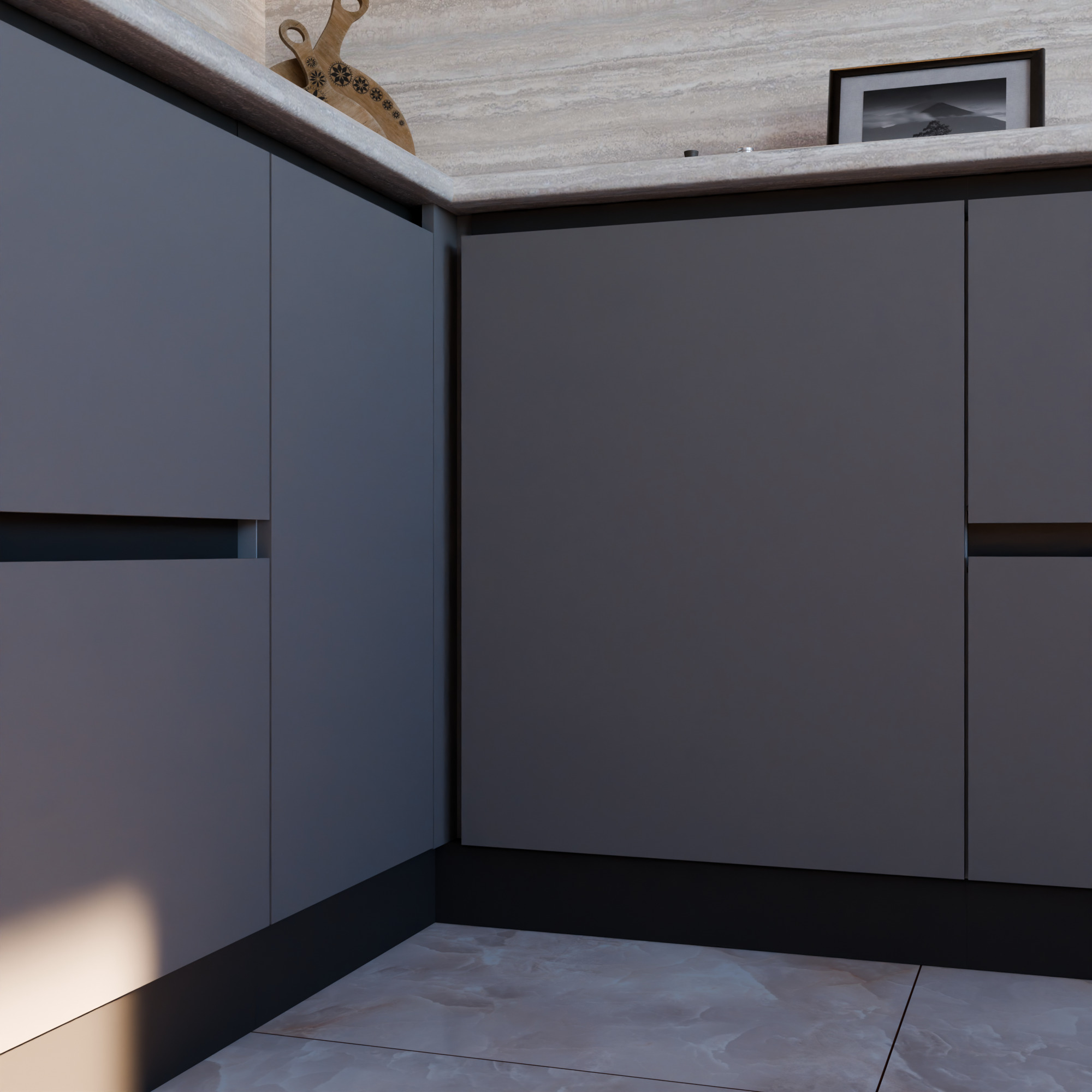 - L-образный профиль Gola — для модулей, расположенных под столешницей, создаёт цельный, лаконичный силуэт фасада