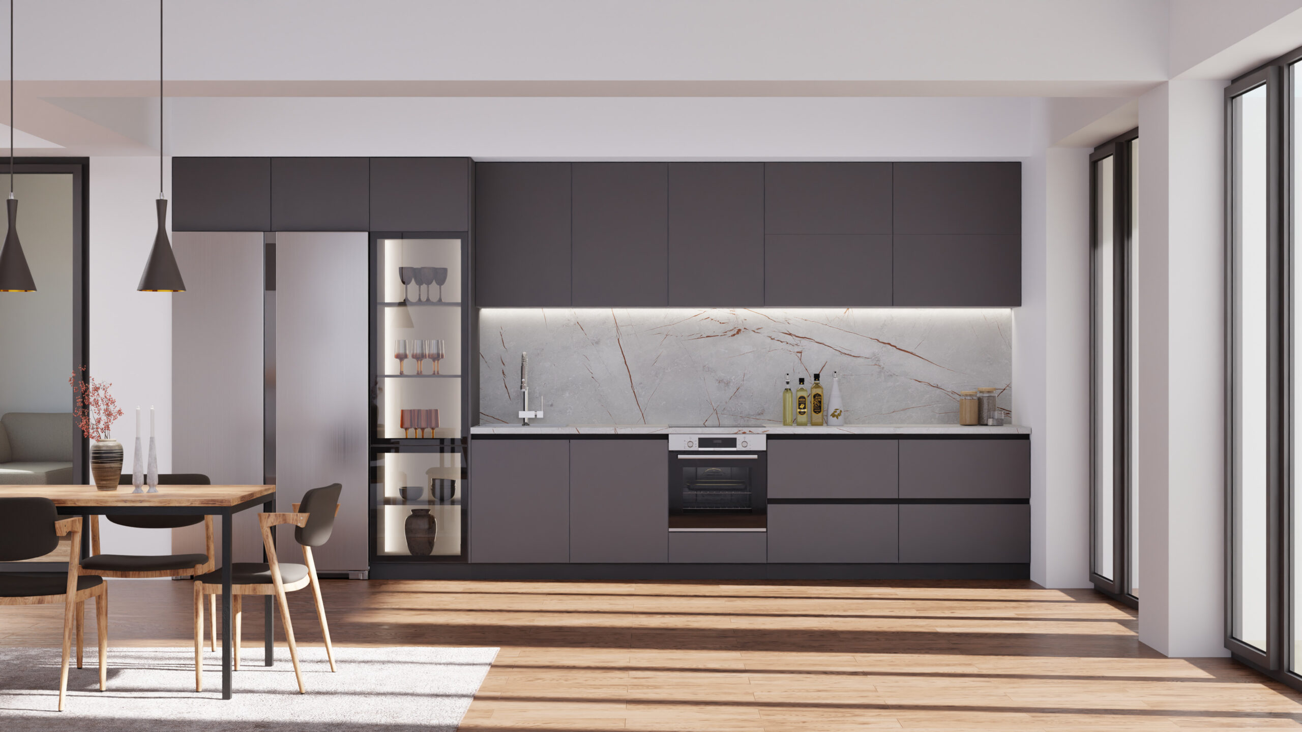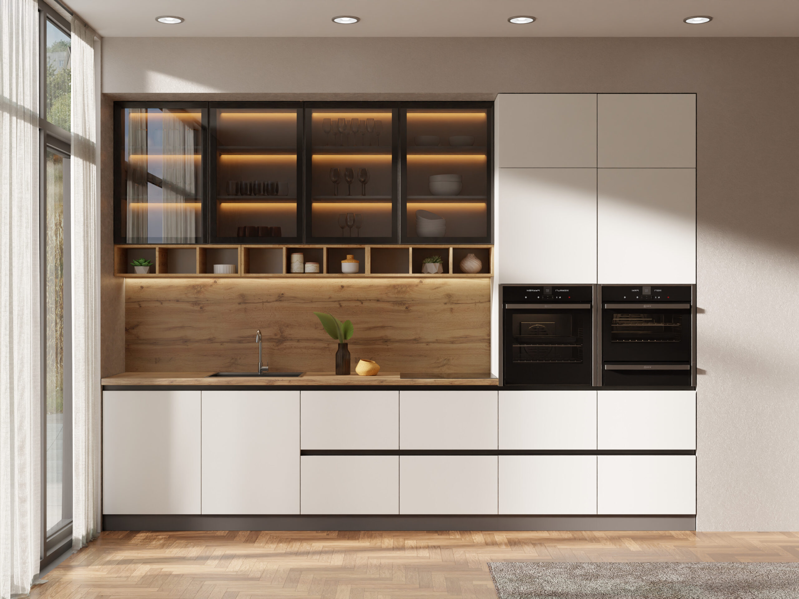 Виано – фасады с покрытием Акрилит, обладающим уникальной устойчивостью к механическим повреждениям, царапинам, ультрафиолету и влаге. Акрилит позволяет сохранить насыщенный цвет и блеск поверхности на долгие годы, обеспечивая премиальный вид кухни.