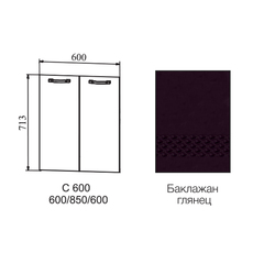 Фасад Капля Баклажан г С/СМ 600, ДСВ Мебель