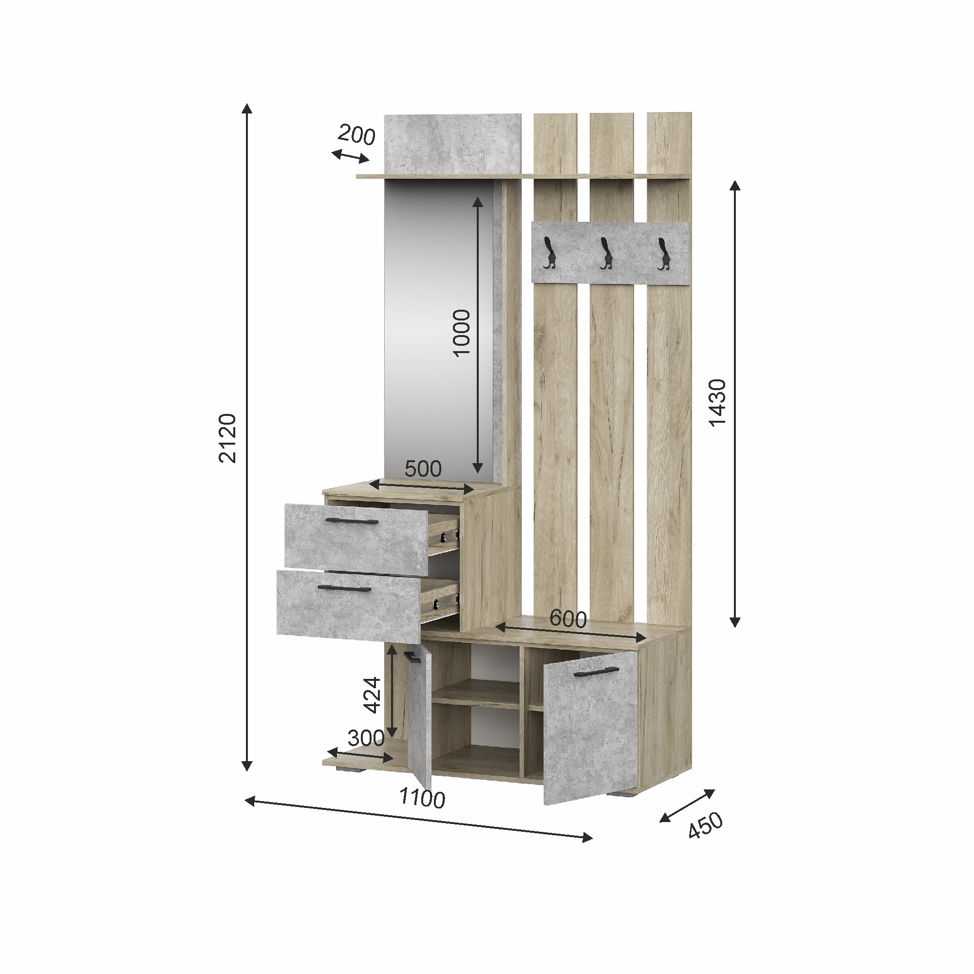 Вешалка Бостон — представляет собой компактный модуль для установки в коридоре небольшой квартиры, в прихожей дома или в помещении офиса.