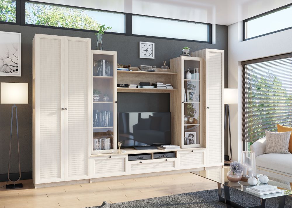 Каждый элемент модульной системы Гостиная "Филадельфия" можно приобрести отдельно или в любом сочетании.
