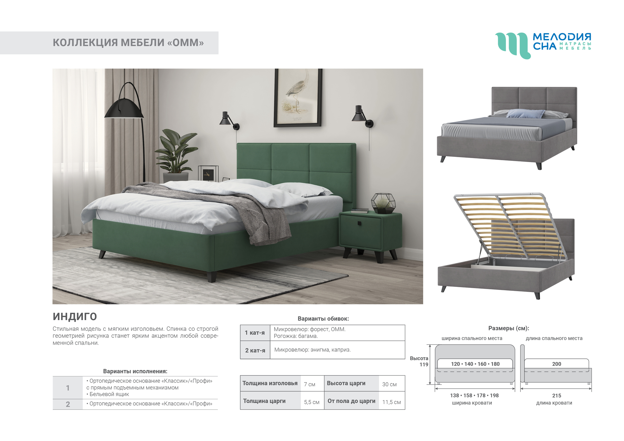 Кровать "Индиго" от производителя "Мелодия сна" из г. Пензы – это сочетание качества, комфорта и стиля. Изготовлена по высоким стандартам и оснащена ортопедическим основанием для максимальной поддержки спины во время отдыха. Продукция доступна к заказу прямо сейчас!