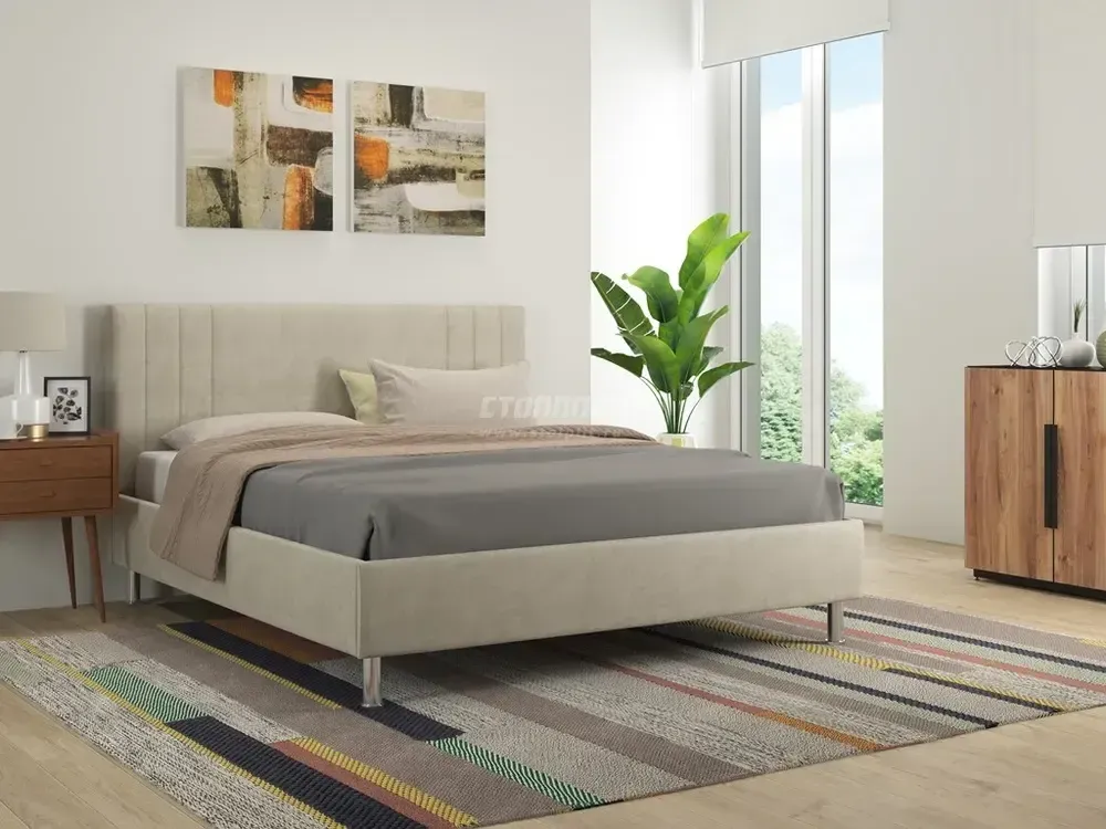 Кровать Жардин SOUL непременно станет душой Вашей спальни. Спинка кровати с вертикальными линиями выглядит благородно и подойдёт к любому интерьеру. Каркас кровати выполнен из ДСП, обшитый тканью. Кровать Жардин SOUL выглядит достаточно строго, при этом обеспечивает свободный доступ к вещам. Ее строгие прямые и одновременно объемные формы придадут спальне изысканный и элегантный вид. Модель, несомненно, станет ярким акцентом в современном интерьере спальни.