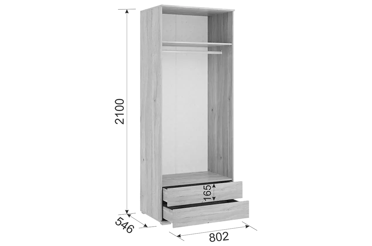 Состоит из: Штанги под одежду, 2-х съемных полок.
