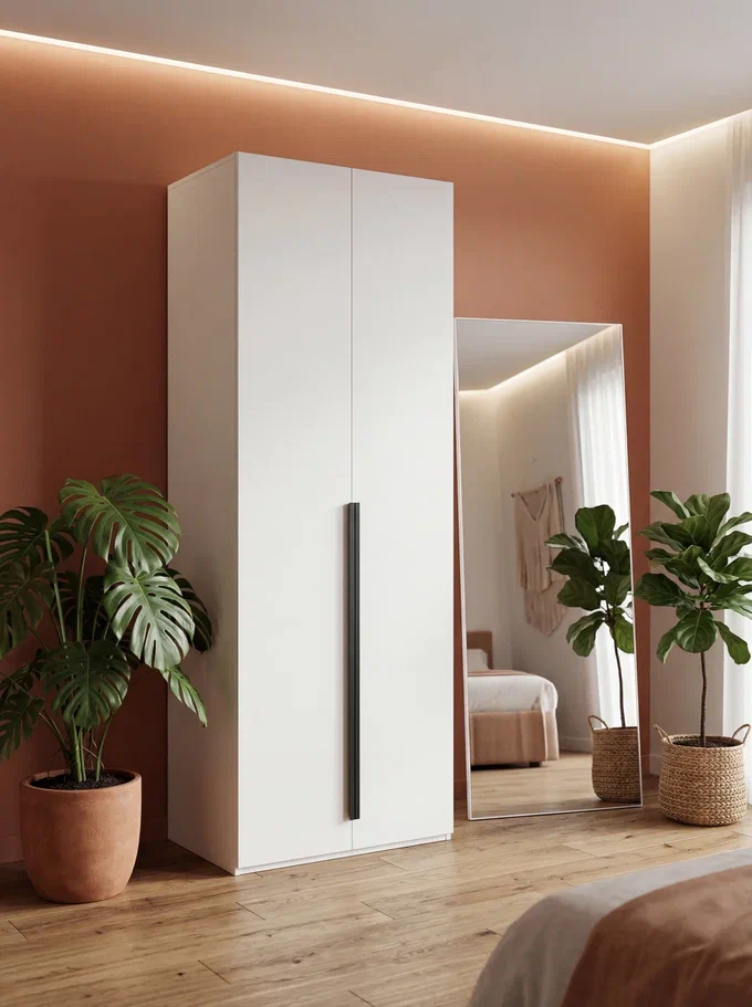 Универсальный и элегантный шкаф. Отличительные черты — легкость, функциональность и практичность. Комфортная высота между полками и увеличенная глубина позволяет удобно хранить внутри шкафа вещи разных габаритов.