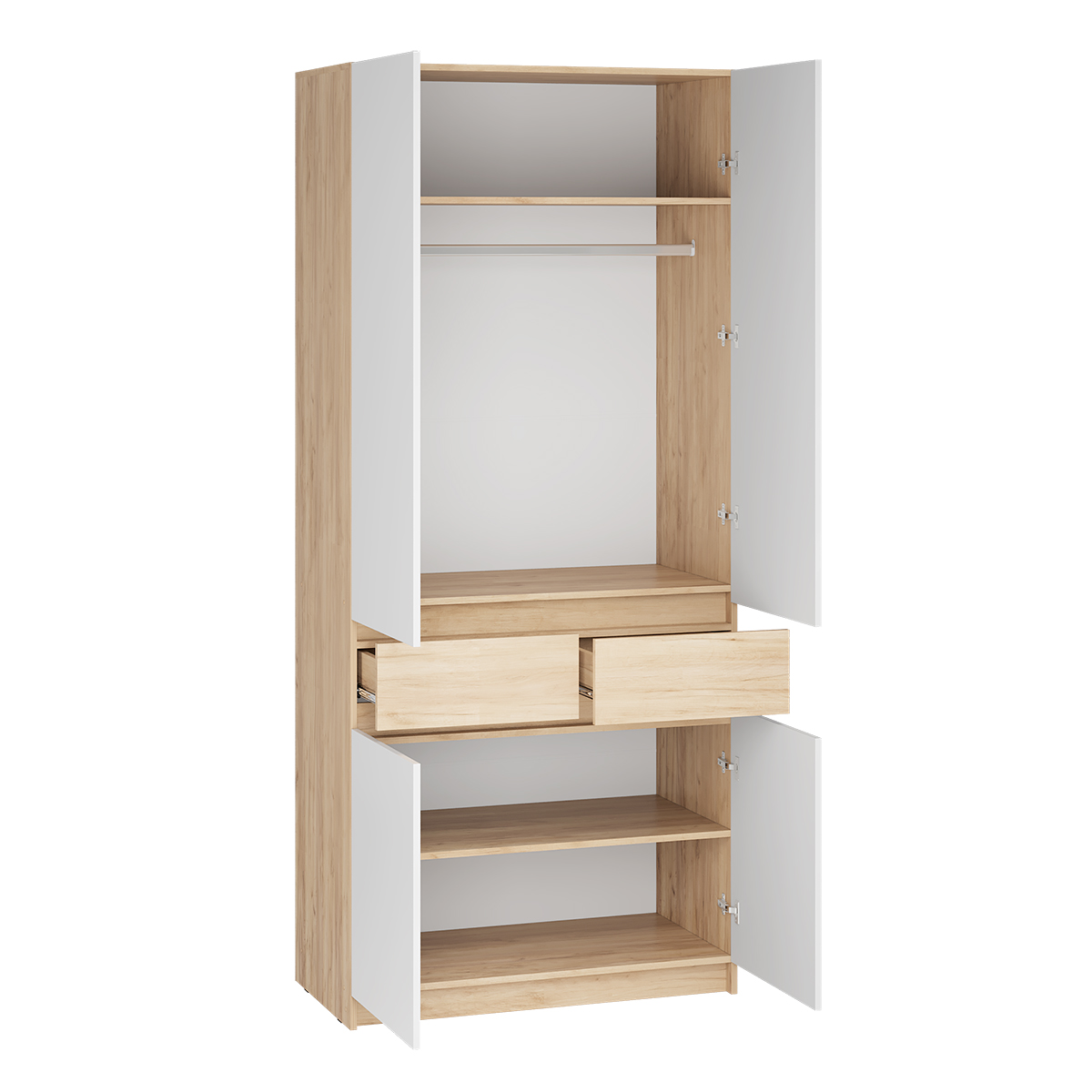 – Лицевая фурнитура отсутствует. Фасады открываются с помощью захвата рукой