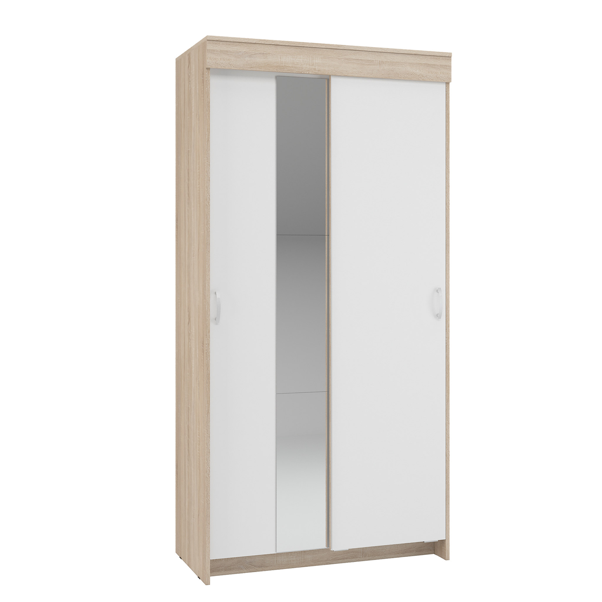 Шкаф-купе Бассо 1,0 м с 2-мя зеркалами (дуб сонома/белый), Интерьер Центр, г.Пенза