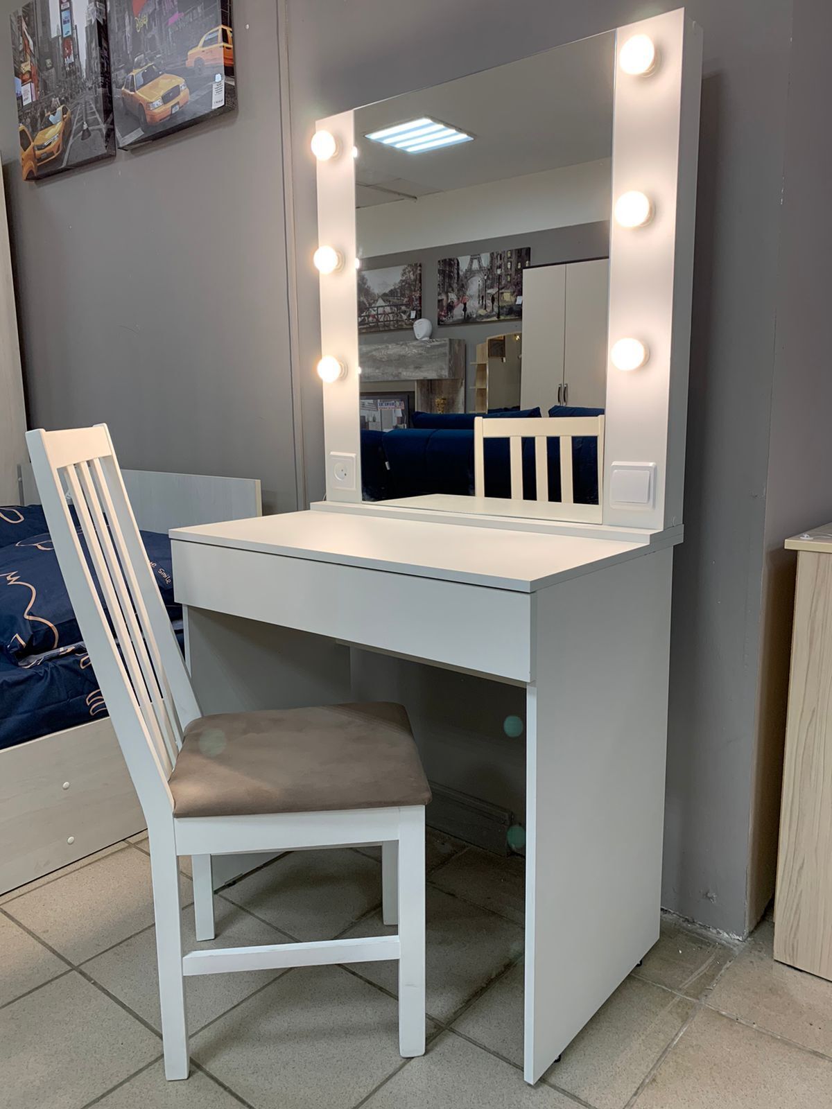 Стол с выдвижным ящиком.