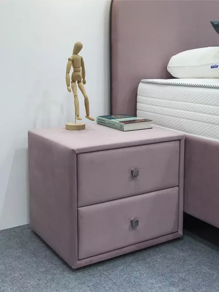 Современная прикроватная тумба. Обивка фасада и корпуса из мягкой ткани микровелюр
