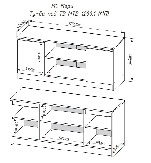 Тумба под ТВ небольшая, но функциональная. Состоит из открытой центральной части с полкой на